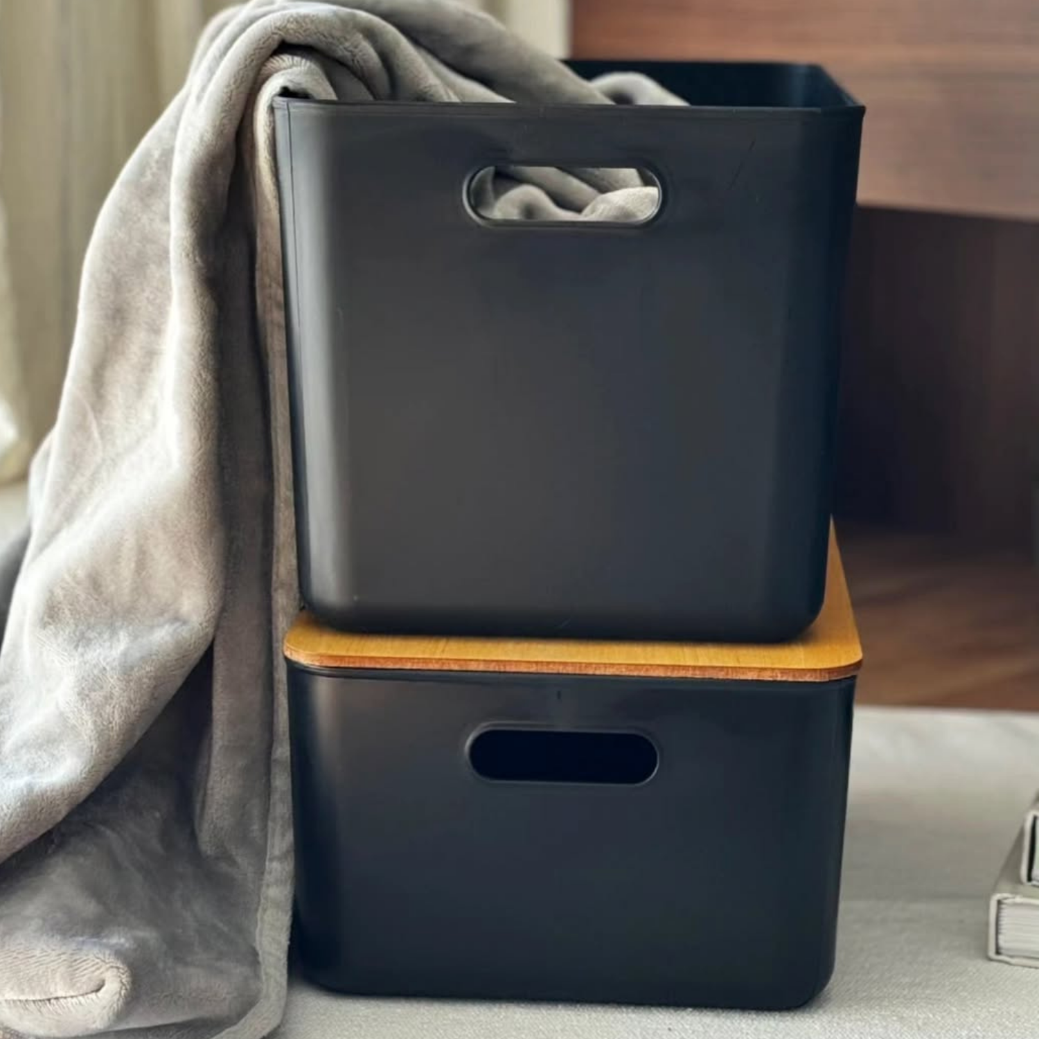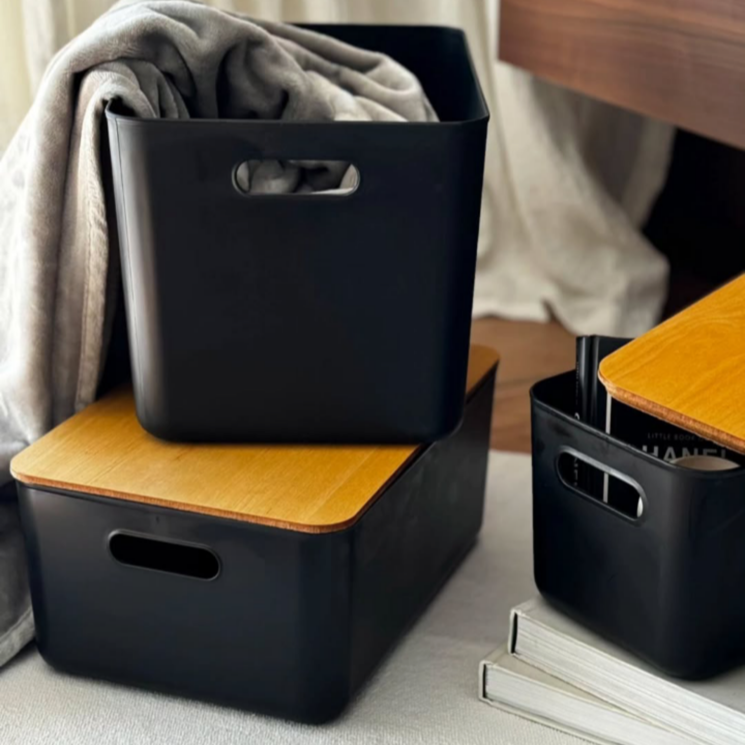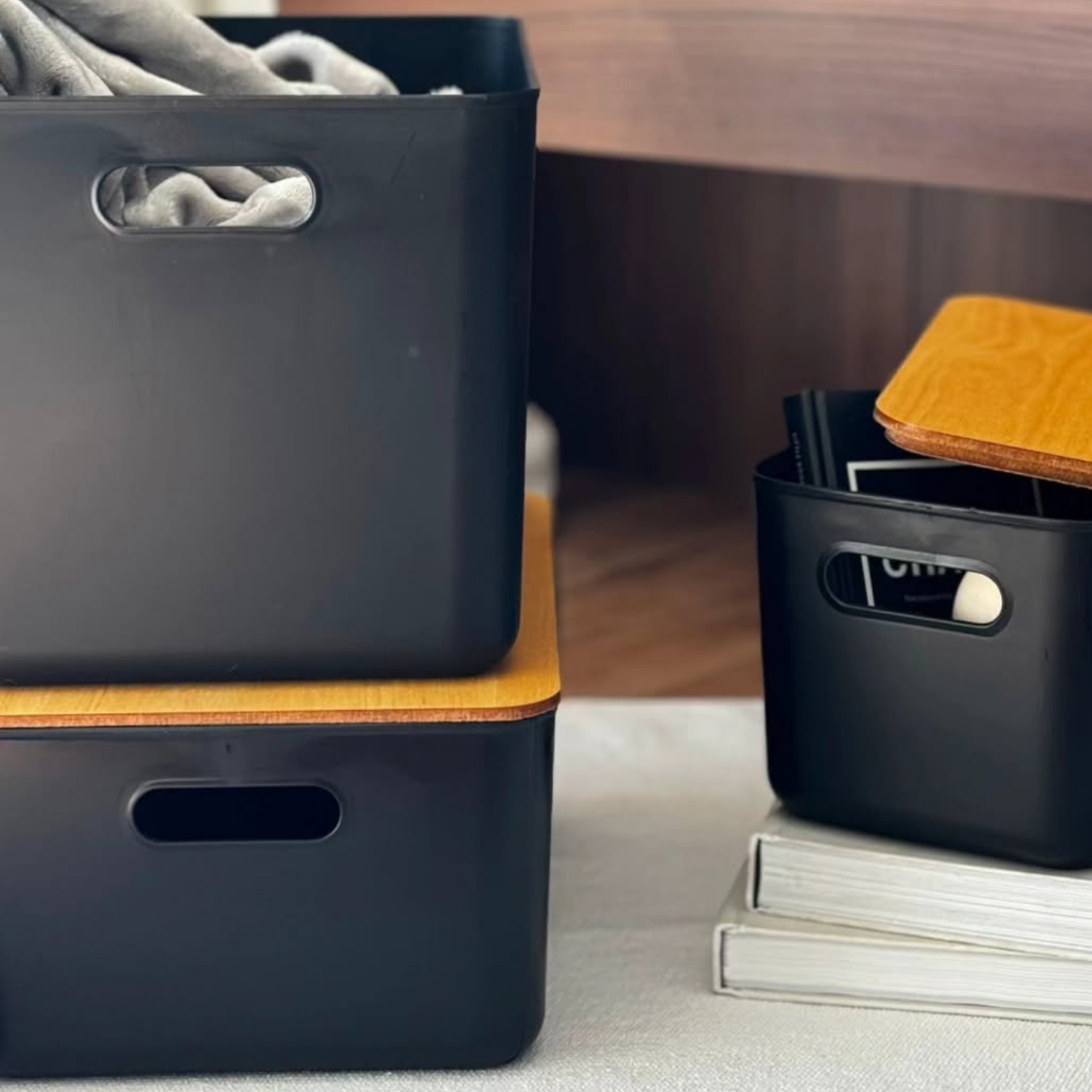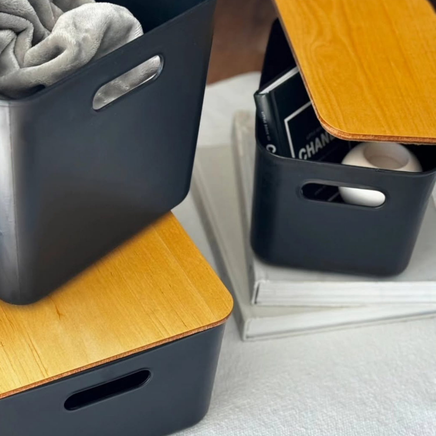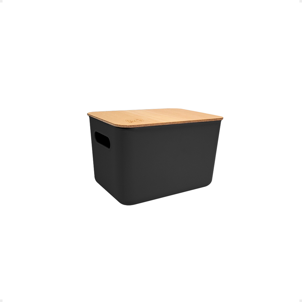 Caja organizadora moderna #2 con tapa de madera. Línea eco friendly.