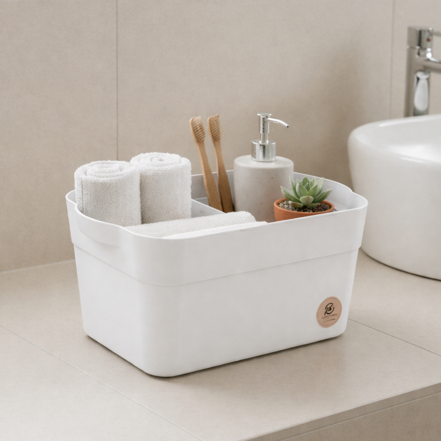 Caja maxi box chica (7 litros) con manijas. Color blanco.
