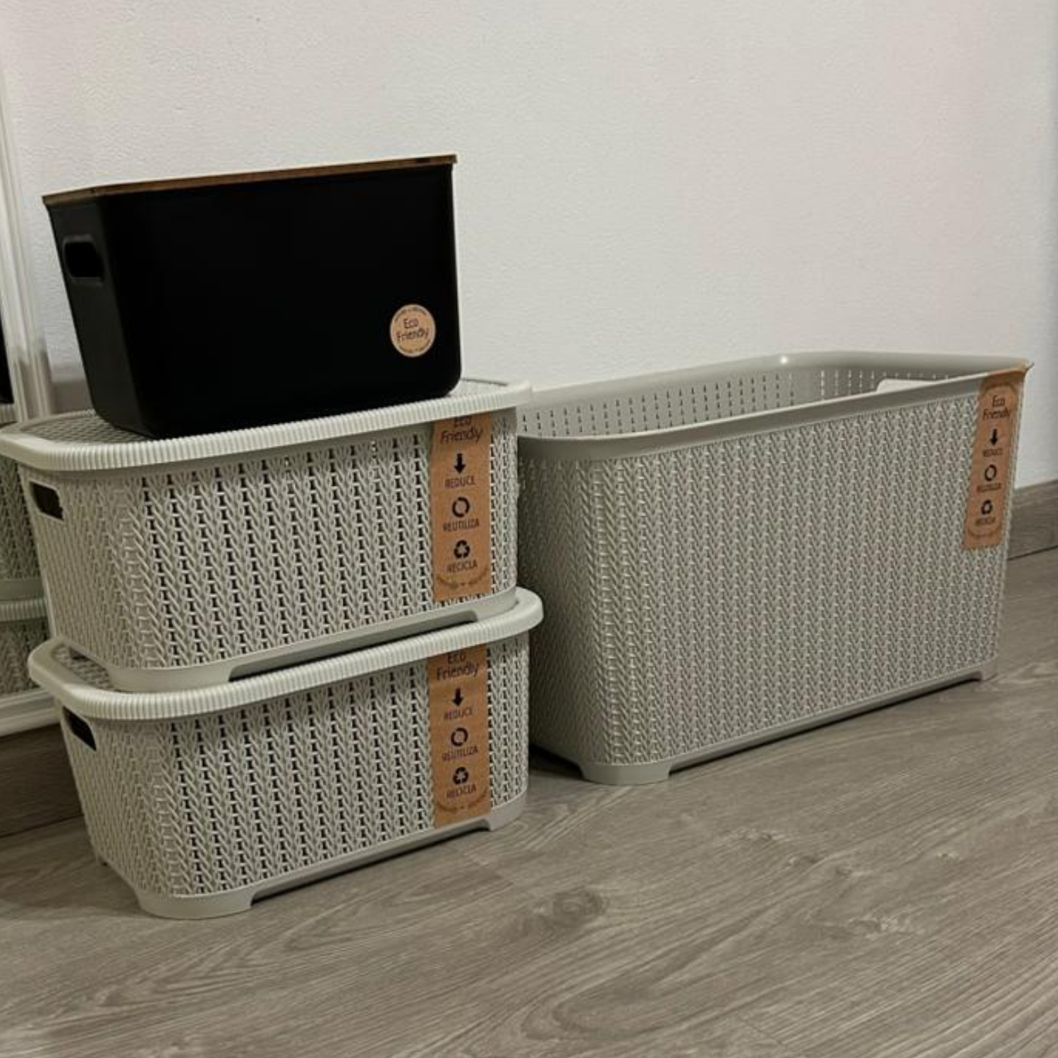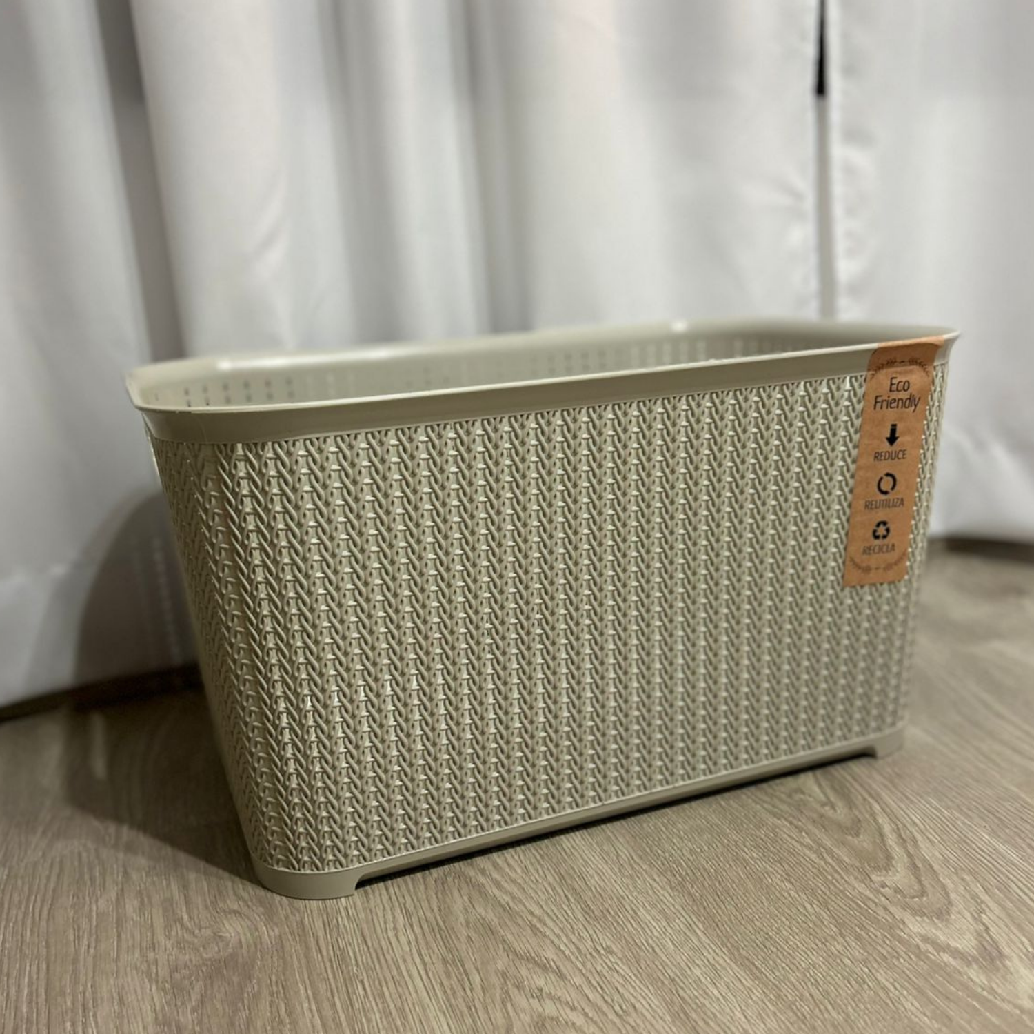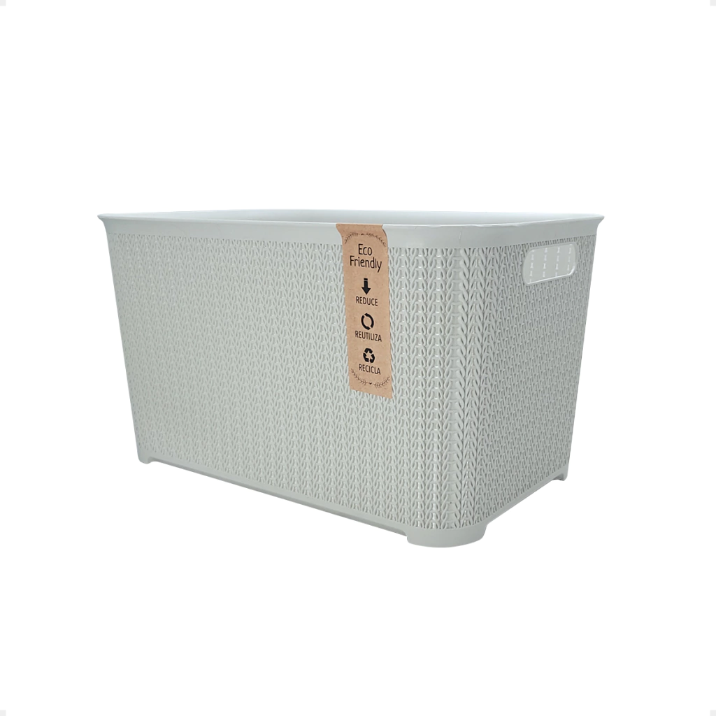 Canasto organizador símil rattán, sin tapa, lína eco friendly.
