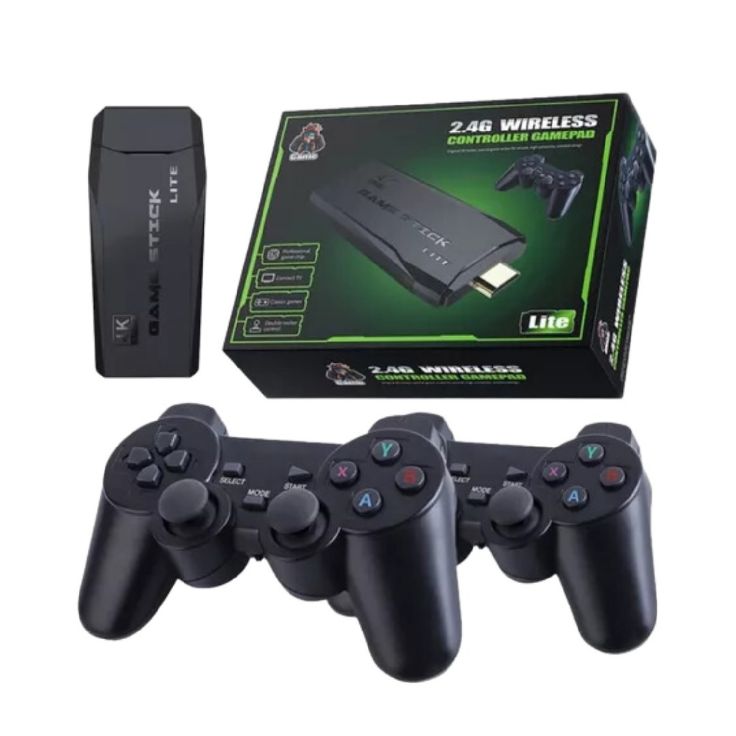 1 mini videojuego. 2 controles inalámbricos. 1 cable de extensión HDMI. 1 cable de alimentación USB. Más de 10.000 juegos retro.