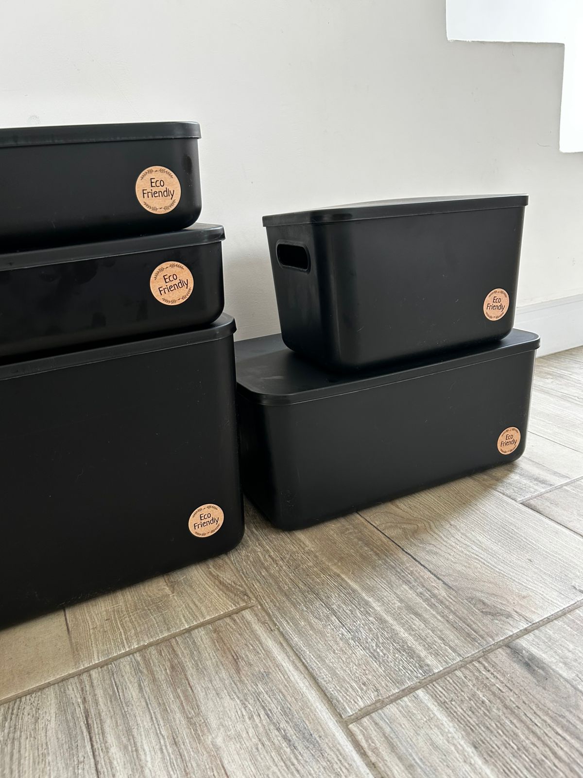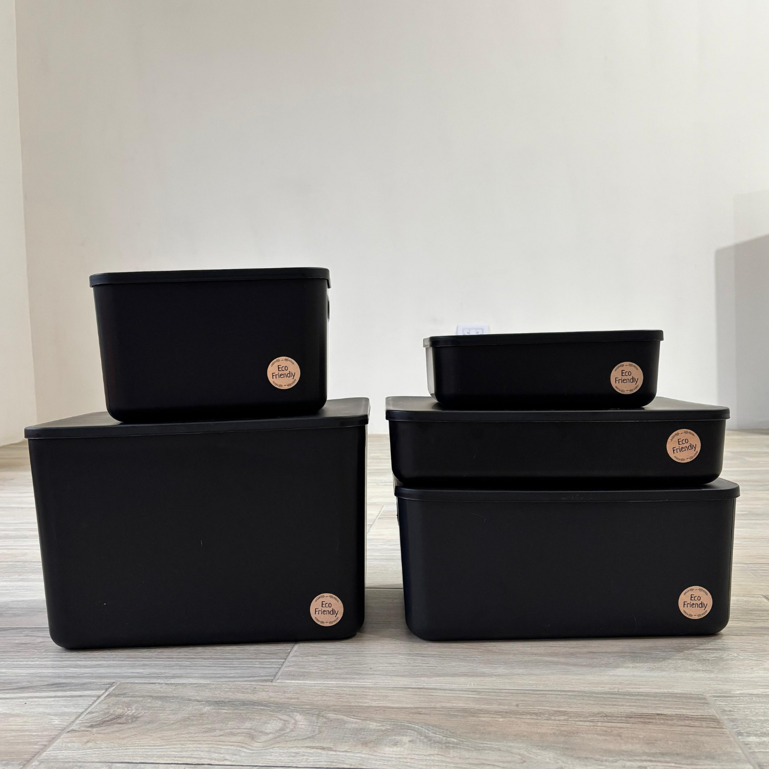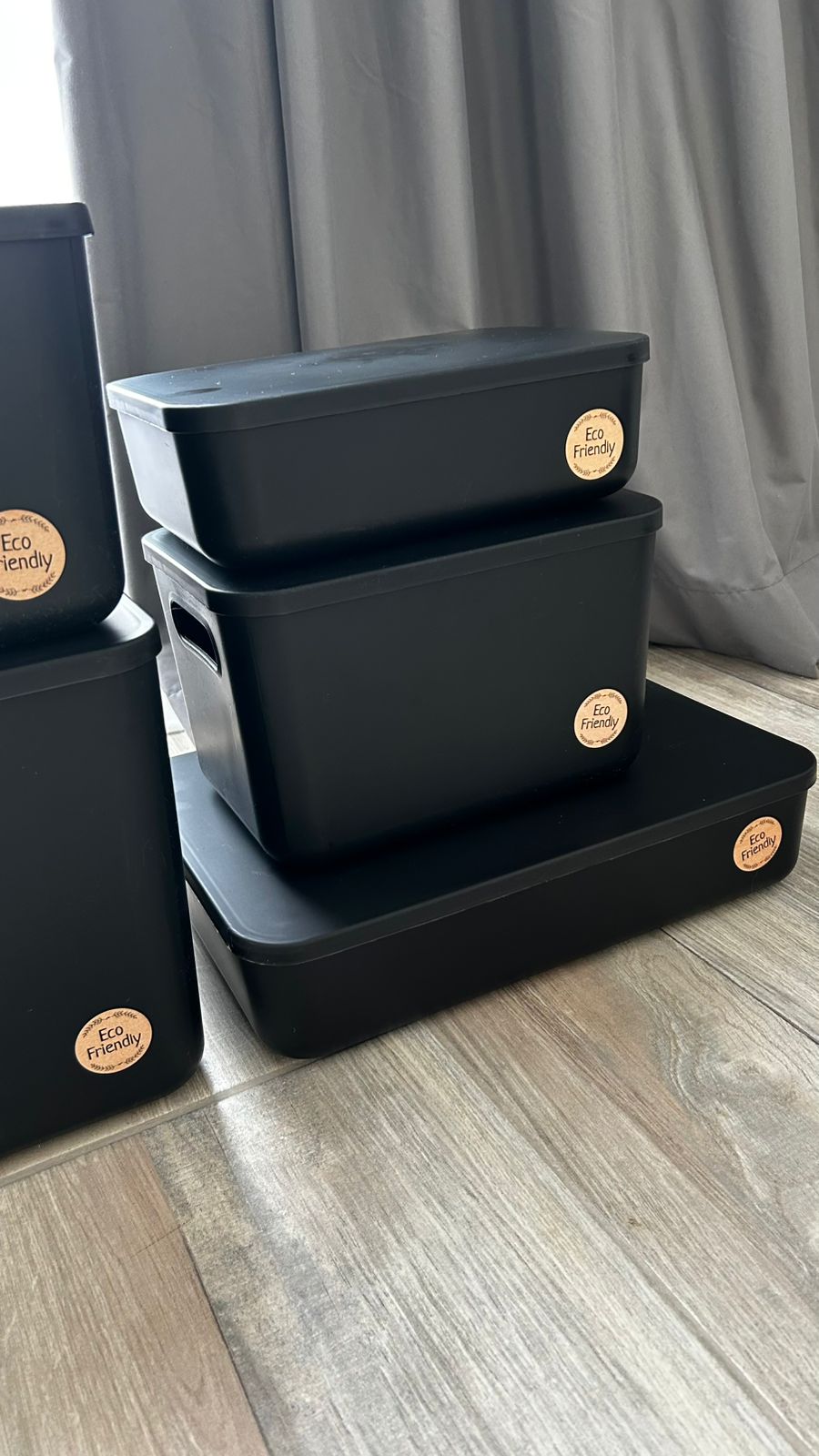 Set completo de cajas moderna eco friendly, tapa plástica. Un total de 5 unidades para organizar cualquier espacio de tu casa.